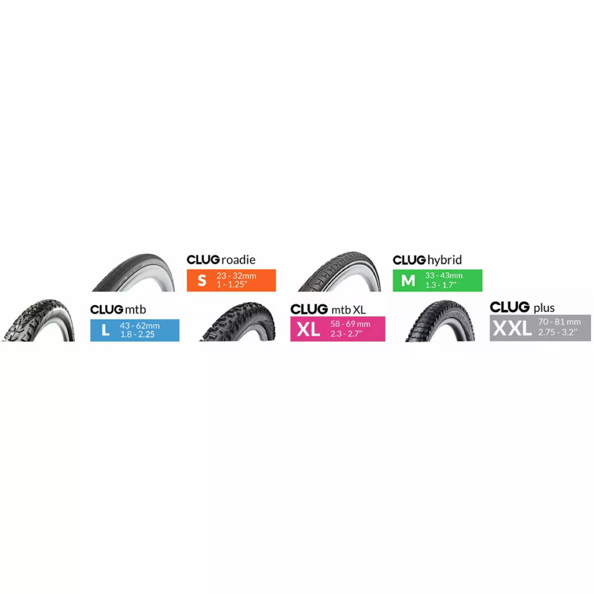 MTB XL: This size is designed to fit extra-large Mountain Bike Tires – bold knobs and trail-ready. If your tire is between 2.3″ and 2.7″ (58mm to 69mm) then this is the size for you.