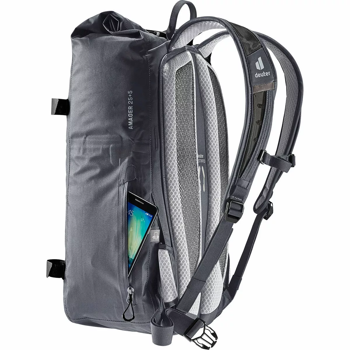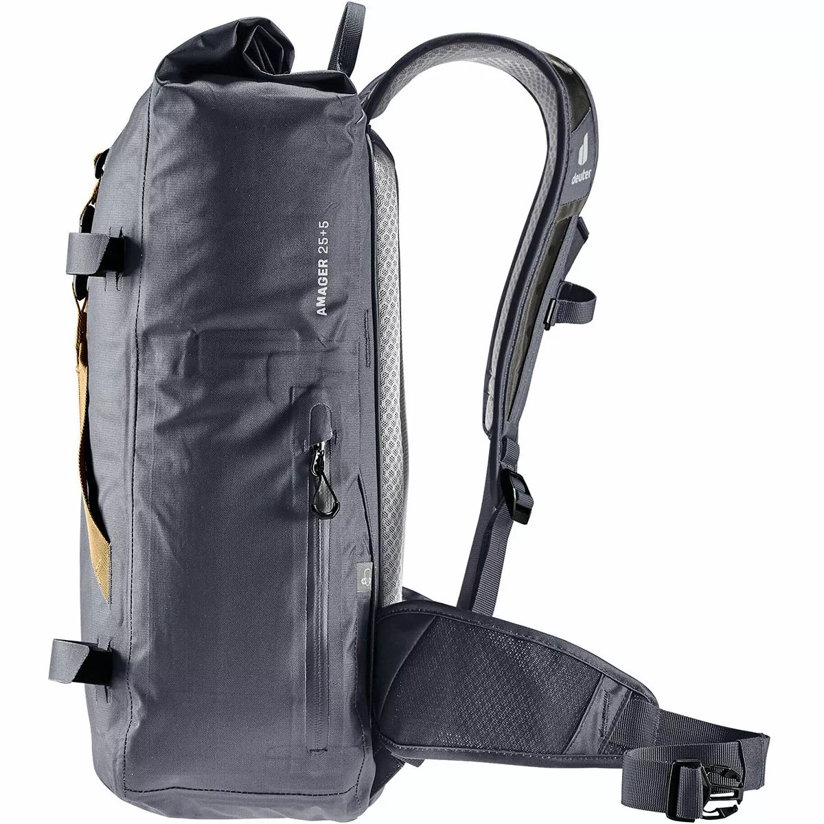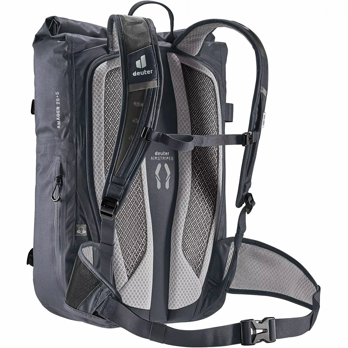 Keep your contents protected from rain and road spray thanks to the waterproof performance of the Deuter Amager 25 Plus 5 Commute Backpack. With a zip-in organiser unit, it keeps a laptop, tablet, folders and paperwork securely in place. The roll-top closure also lets you extend the capacity by 5 litres. This means there’s easily enough space for a change of clothes when a quick workout afterwork is on the cards.