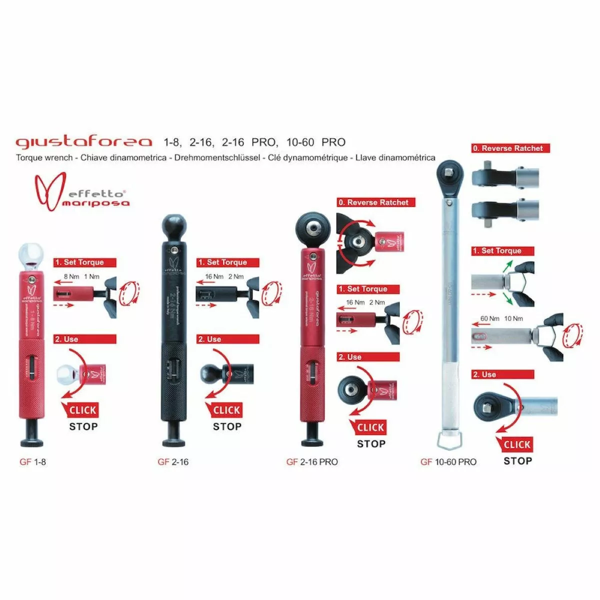 The Effetto Mariposa Giustaforza Bicycle Torque Wrench is an ideal tool for both professional mechanics and cycling enthusiasts, Giustaforza 1-8 torque wrench has a very small head, to operate in tight spaces.