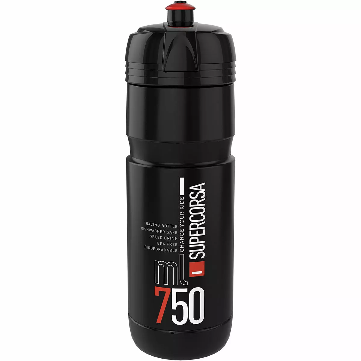 The Elite SuperCorsa 750ml Bottle is built with a 74mm diameter allowing for use with all conventional bottle cages on the market, making it perfect for everyday riding.