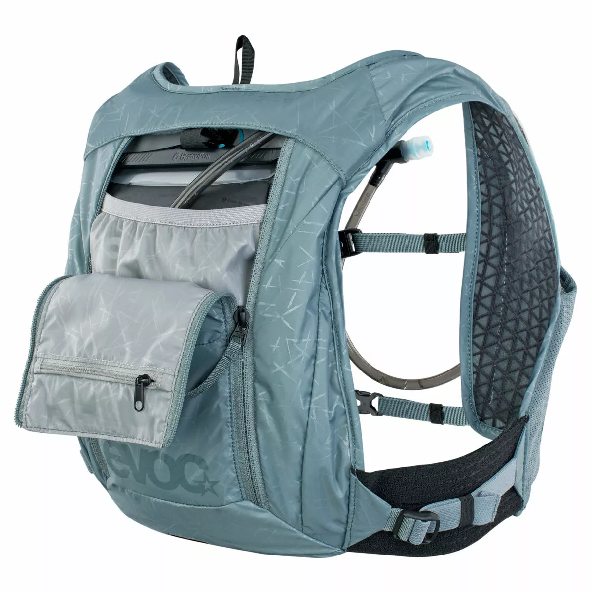 A minimalist pack built for riders on the trail, the Hydro Pro sits close to the body with an adjustable harness design. Stabilising the fit, the pack is body hugging with large hip wings extending from the main compartment, ensuring perfect load distribution, plus a comfortable fit. Utilising EVOC’s Airo Flex construction, the pack is also kept flexible, robust and incredibly breathable.