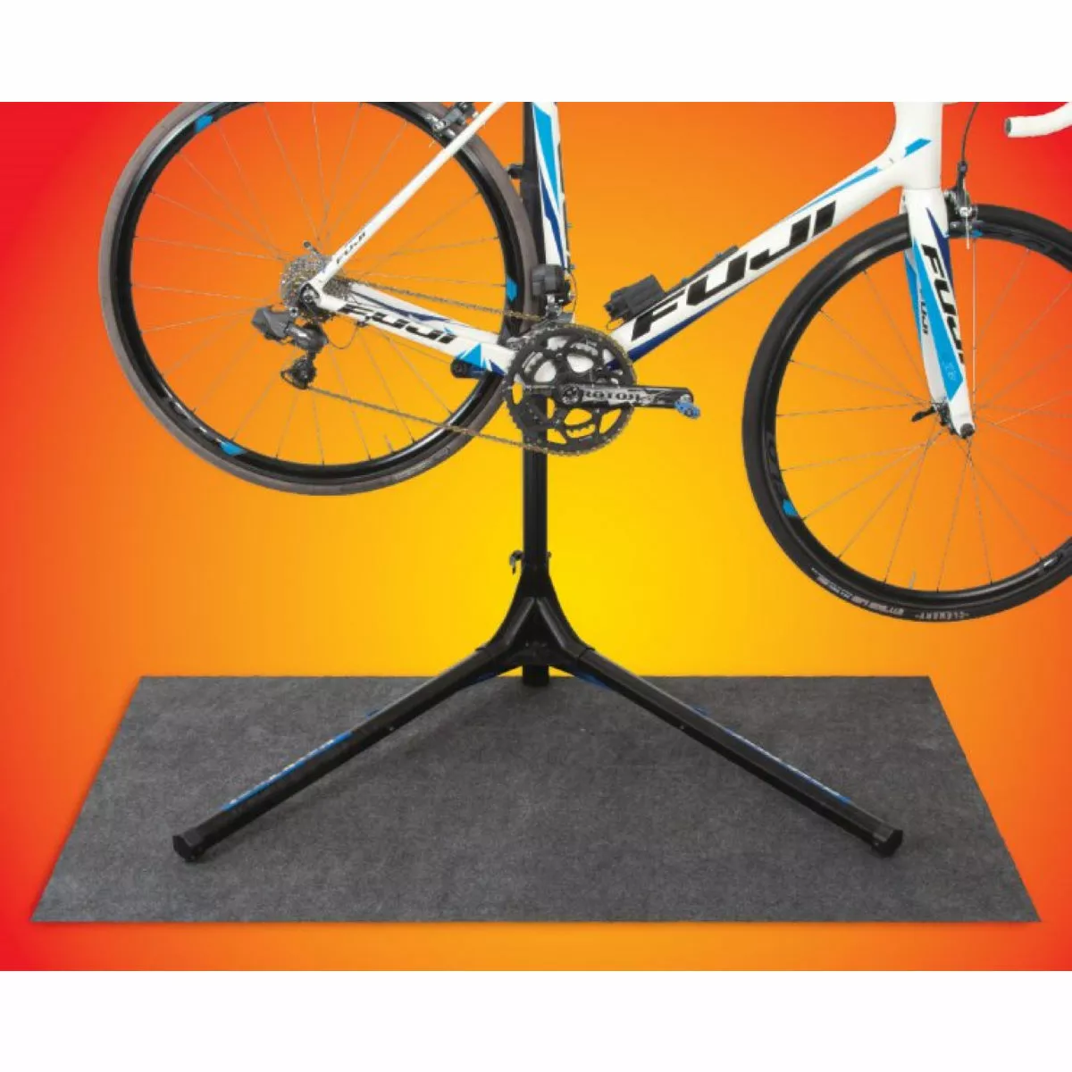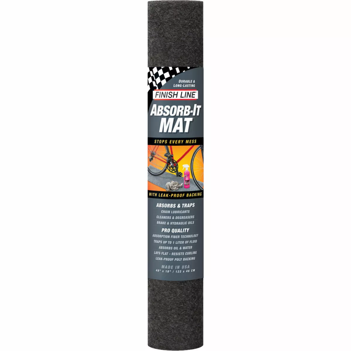The Absorb-It Mat comes in two different sizes: 48″ X 18″ and 60″ X 36. Additionally, its special absorption fibre technology absorbs and traps chain lubricants, cleaners, degreasers, brake fluid and hydraulic oils. Finally, its combination of absorption fibres and a leak-proof poly liner make it the perfect accessory when degreasing and lubricating bike chains.