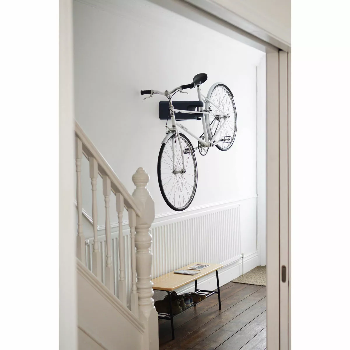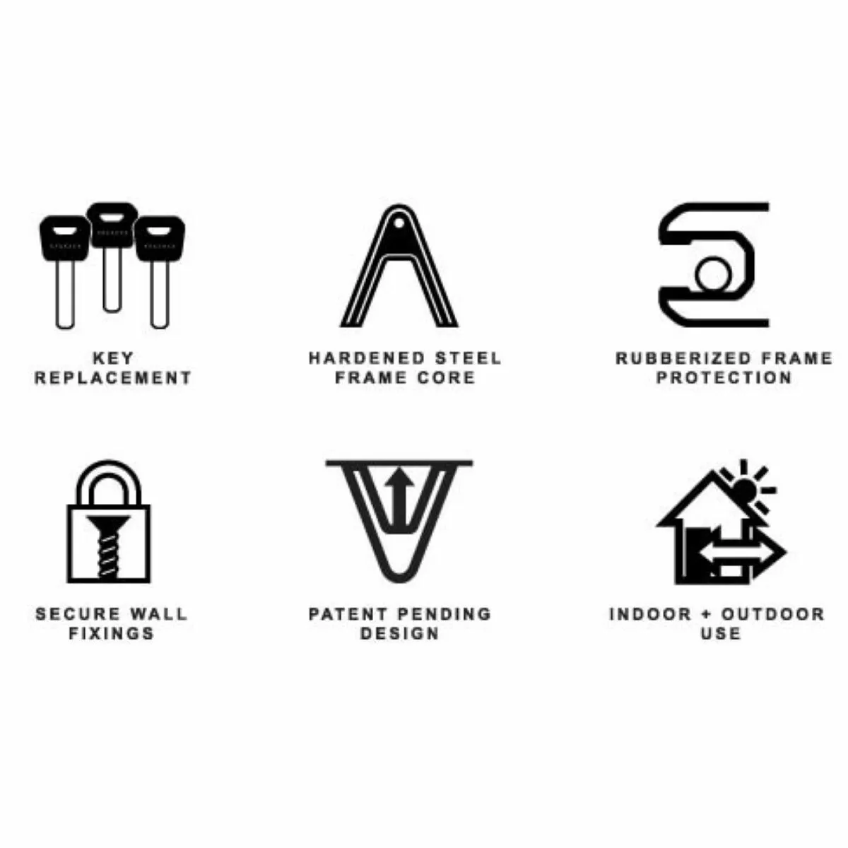 A beautifully designed, super practical bike storage solution, AIRLOK’s triangular shape means it fits most bike frames and the impact-resistant rubberised mouth prevents frame scratch. This lockable bike wall hanger has been UV-tested and is thus suitable for outdoor as well as indoor use.