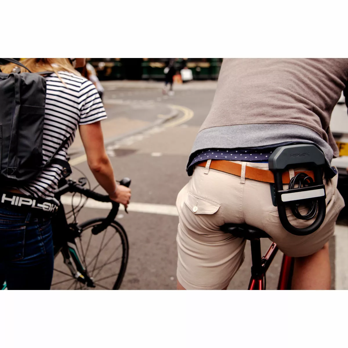 Hiplok DX features Hiplok’s patented CLIP + RIDE system for easy carry on bag straps and belts – no bracket required. Having it out of your bag also means it’s ready to go for a quick lock up. It’s rubberised shackle also protects against frame scratch.