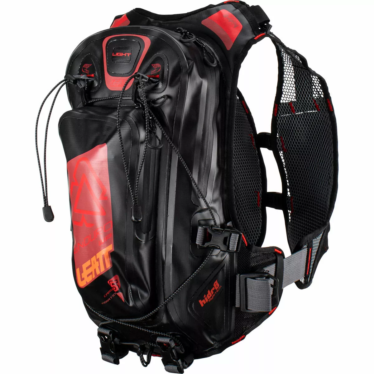 The Leatt Hydration MTB HydraDri WP 2.0 is a Design and Innovation award-winning, fully-welded, waterproof hydration backpack. Fully equipped with a 2.0L bladder, 5L cargo space, and a level 1 back protector, it offers ample room for all your trail gear as well as keeping you protected where you need it most. A chest harness and shoulder adjuster system also provides a solid non-bump fit without a waist belt, while the AirLine back ventilation keeps you cool, and the clever reflective back panel keeps your liquid both hot or cold.