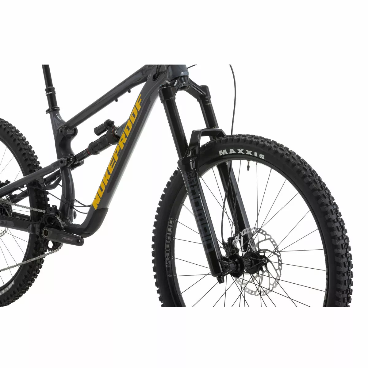 Frame: Nukeproof Mega V4 297 Alloy, 165mm Travel, custom triple butted hydro-formed tube set, internal cable routing, ISCG 05 mount, Enduro Bearings, Threaded 73mm BB, Boost 148mm rear axle spacing, 3D contoured Rubber frame protection