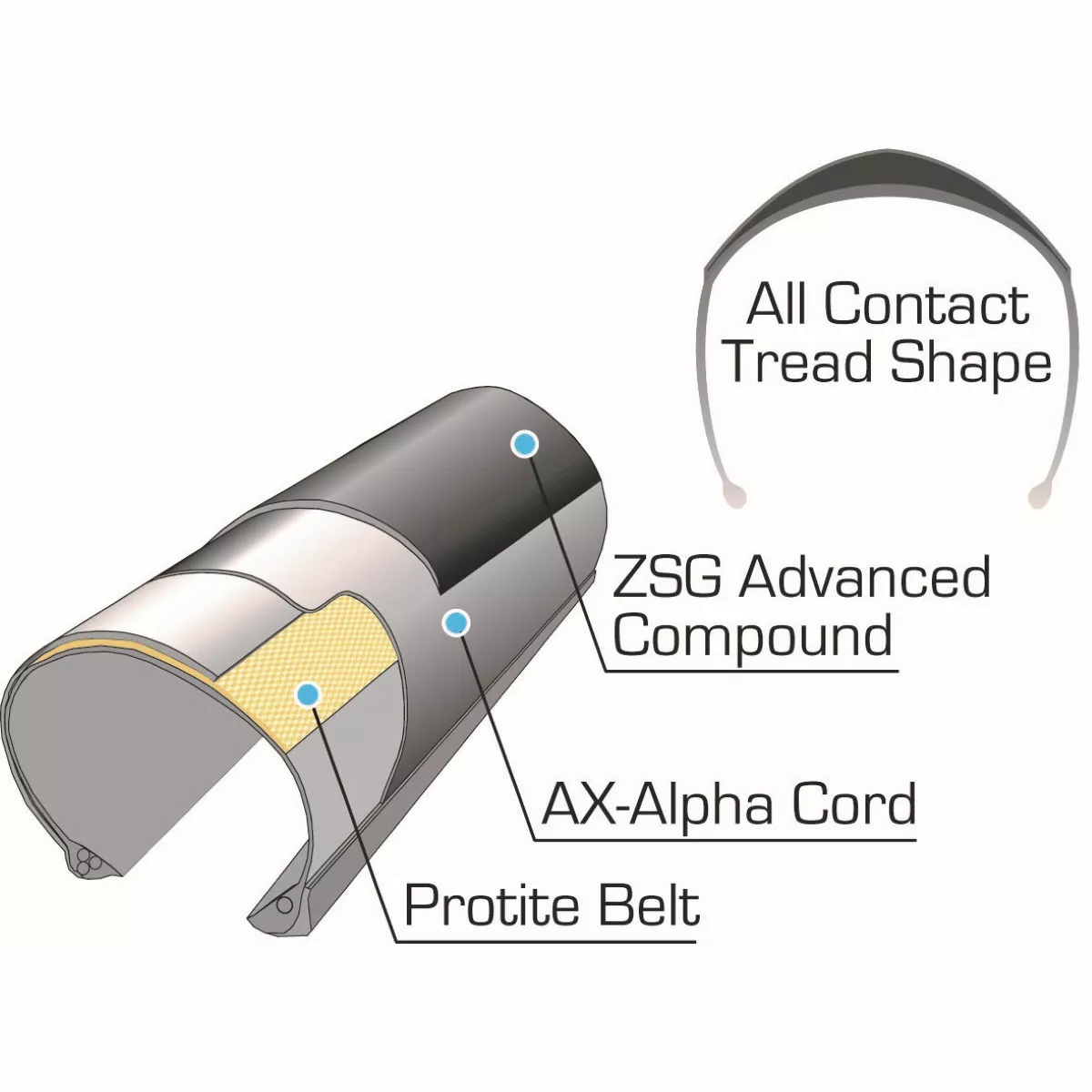 Emblazoned with a mixed tread pattern for making the most of mixed terrains and gravelly tracks, this dependable Panaracer tyre gives enhanced protection from its ProTite belt and AX-Alpha Cord casing. The ZSG (Zero Slip Grip) compound also helps you maintain balance and poise on the most arduous road surfaces.