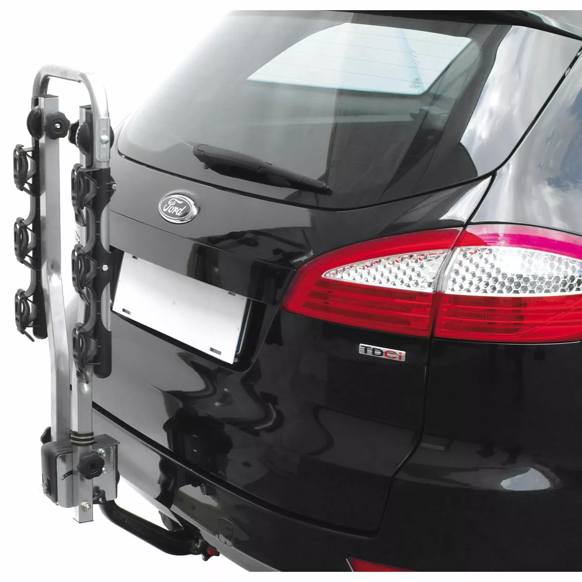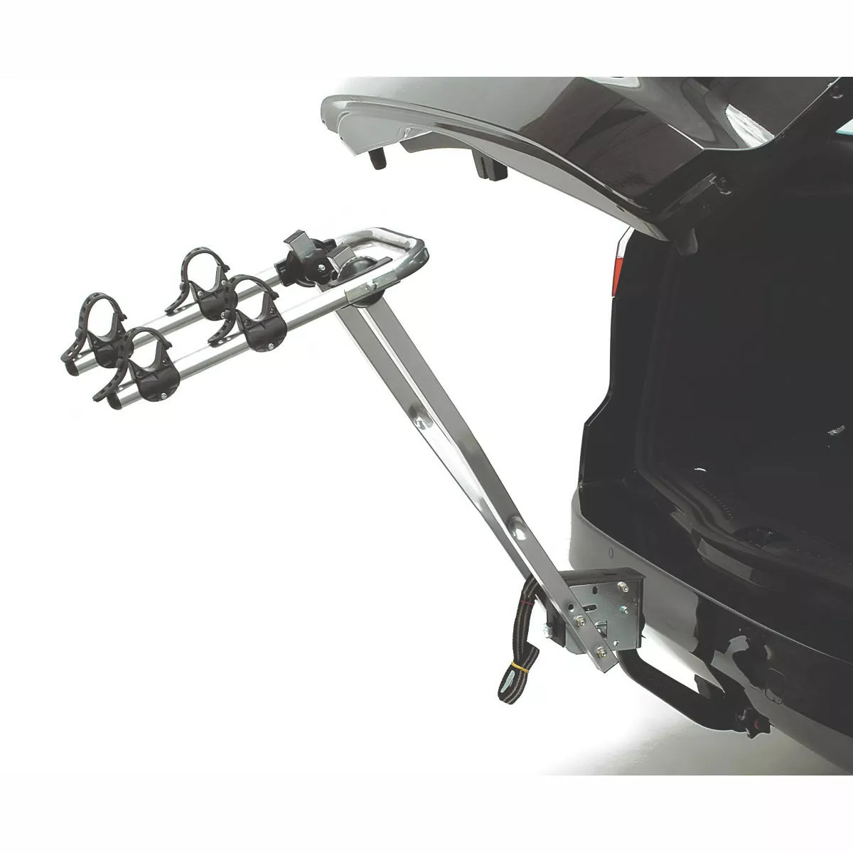 It features a steel frame that’s designed with a tilt mechanism, which enables you to tip the rack forwards to get access to your vehicles boot even when fully loaded. Plus, it’s capable of carrying 3 bikes secure while also having shock-absorbing frame support to protect your bikes during transit.