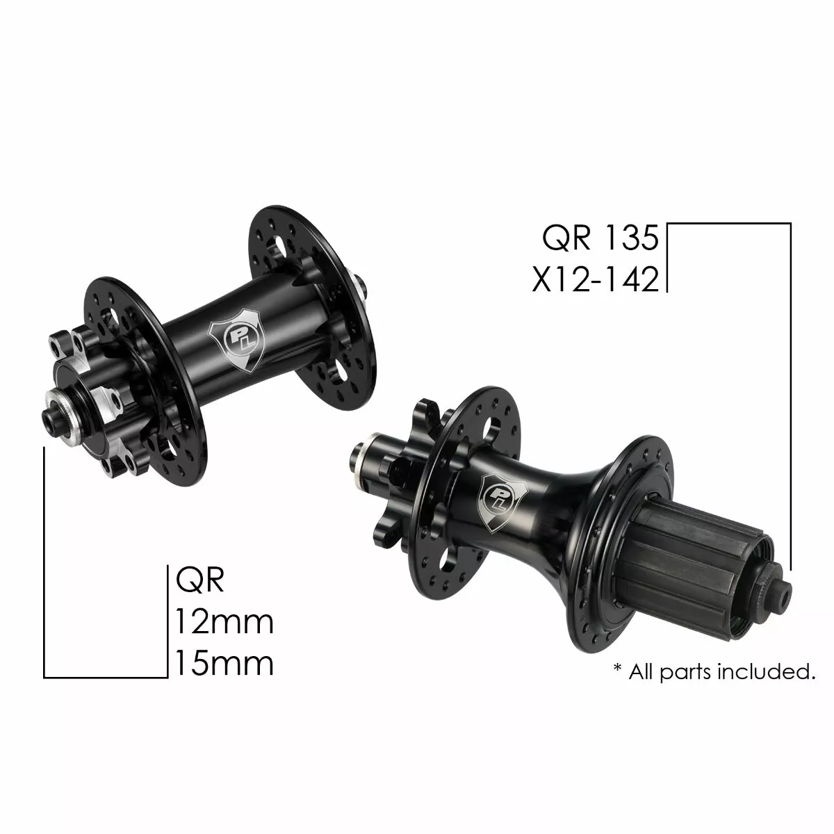 Skewer Type: Front: QR/12mm/15mm; Rear: QR/X12-142mm
