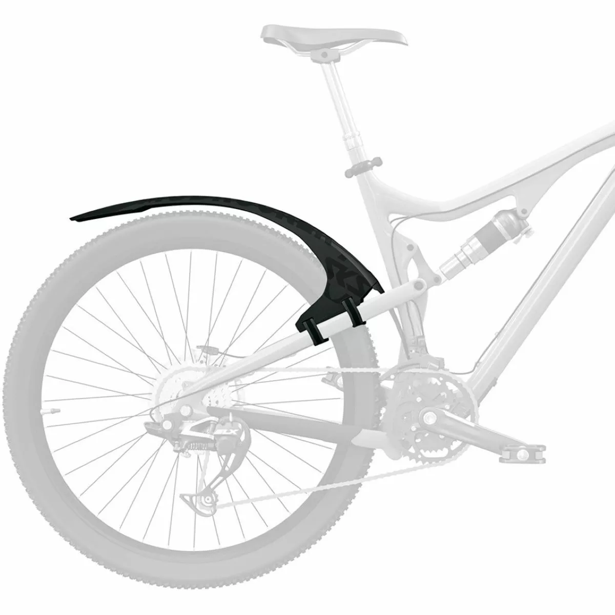 At the front of the mudguard, the SKS Mudrocker Rear Mudguard features an extender that provides additional protection for your bike’s bottom bracket and front derailleur. Plus, it can be specifically adapted using scissors to get the perfect fit. In addition, a further extension provides even more protection against splashing water. If necessary, it can be easily attached to the lower rear end of the mudguard.