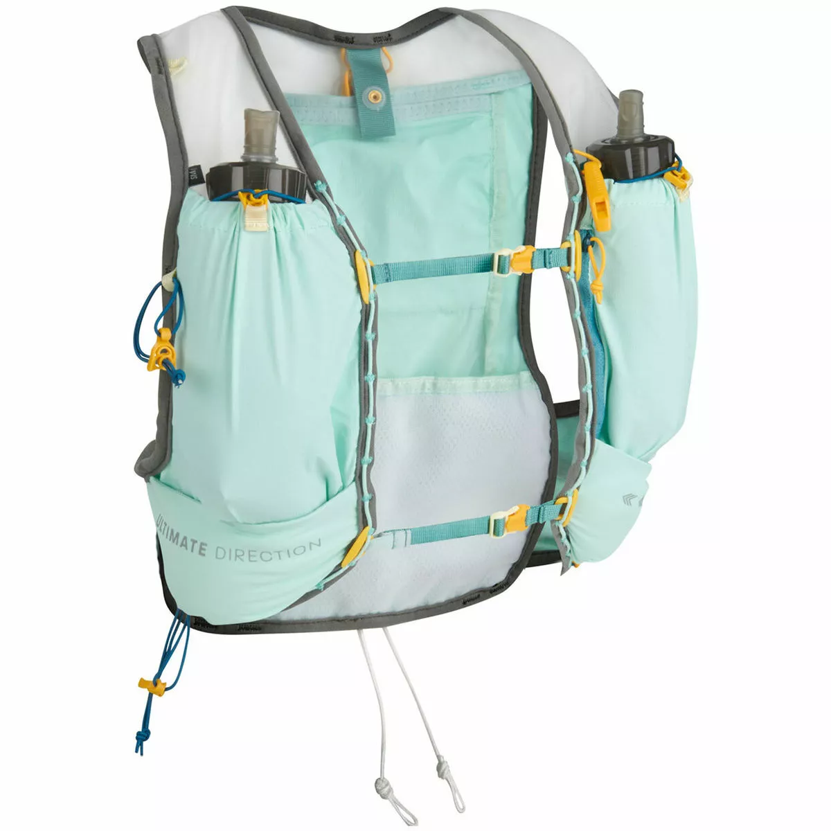 The Ultimate Direction Race Vesta 6.0 ensures you can run fast and fully hydrated on the trail. Made using the latest in fully customisable vest-fit technology with the ultra-durable Comfort Cinchâ„¢ 3.0 and protective mesh panels, it prevents chafing over many miles as well as providing breathability to where it is needed most. A narrower cut in the shoulder straps and back also offers a more tailored fit for smaller frames, while the water-resistant back panel lends maximum ventilation.Â