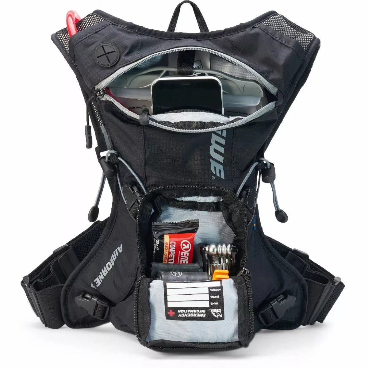The Airbourne hydration pack delivers the ultimate in stability, engineered with the USWE 100% bounce-free NDM⢠Race Suspension Harness that keeps you gear in position while ensuring full freedom of movement.